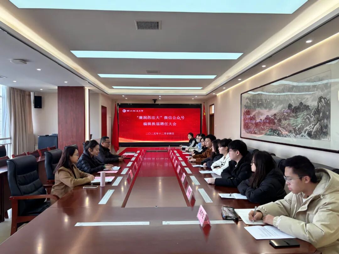 12月24日中午,校纪委机关举行“廉润西法大”微信公众号学生编辑换届聘任大会。纪委综合室主任燕楠、副处级纪检员杜平、纪委综合室秘书王恩出席会议,全体受聘学生编辑参加,会议由综合室副主任周兵主持。